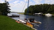 A művelethez hasra kellett feküdni a parton és úgy beengedni egy kézzel a kormánylapátot a vízbe és helyére illeszteni, miközben másik kézzel a csavart átdugni a szerkezeten. Miután a helyére került a csavar, jöhetett az anya, majd az ellenanya feltekerése és megszorítása csak úgy érzéssel. Majd kiderül rövidesen hogy sikerült :)